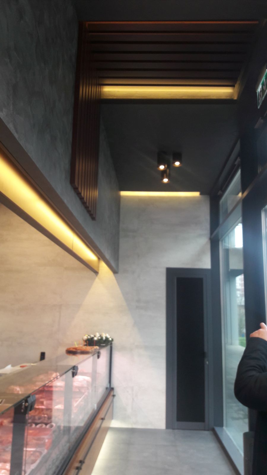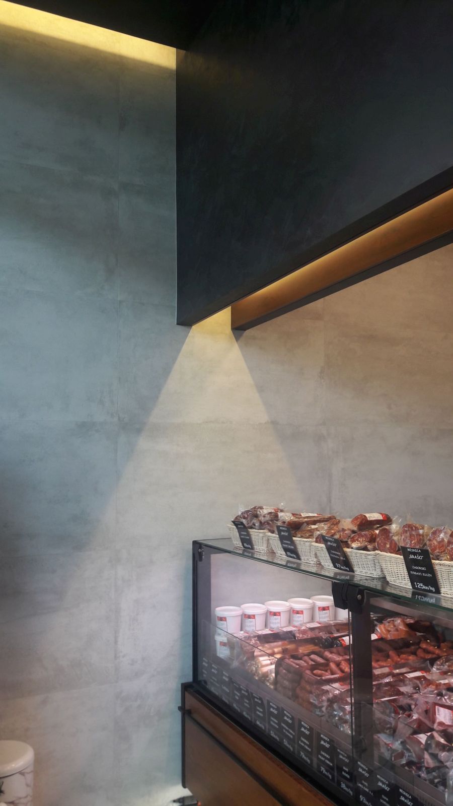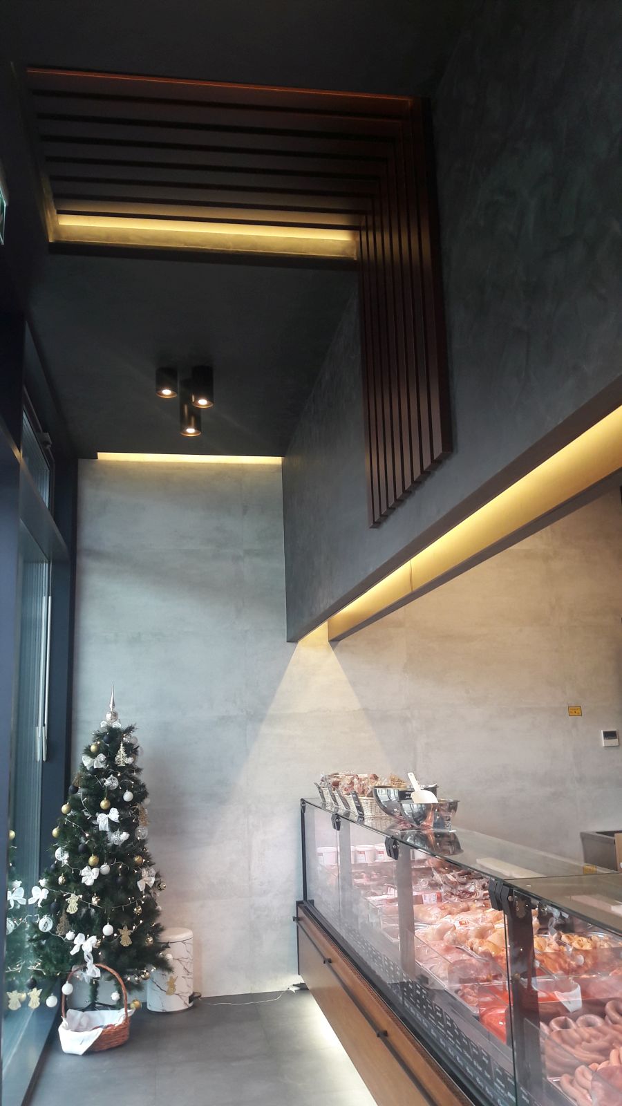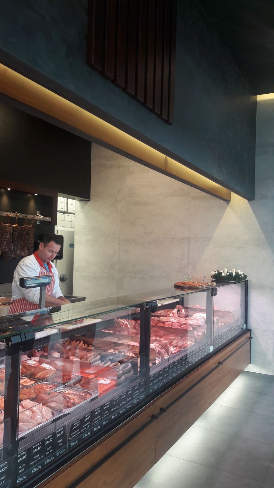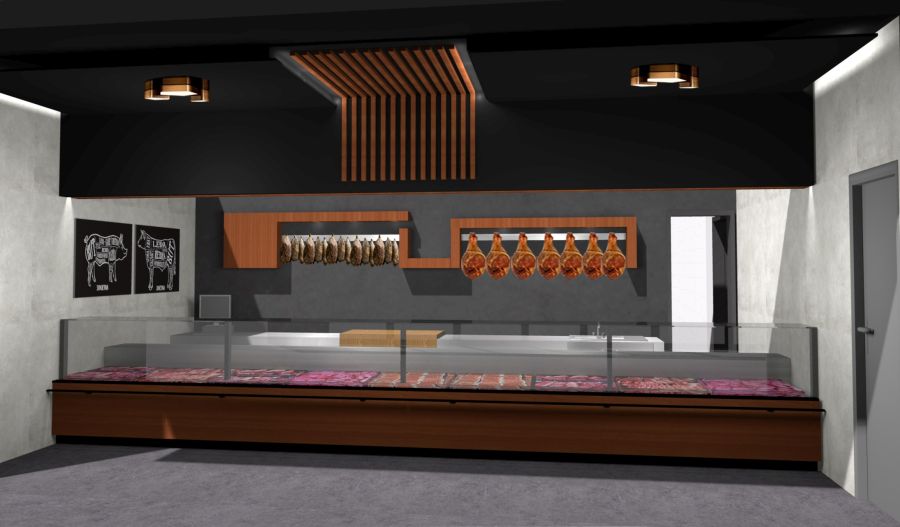 Izrada idejnog i izvedbenog projekta za dizajn interijera prostora za kupce u novootvorenoj mesnici Grašo , Vrbani , Zagreb.