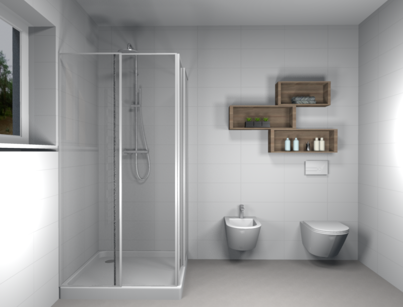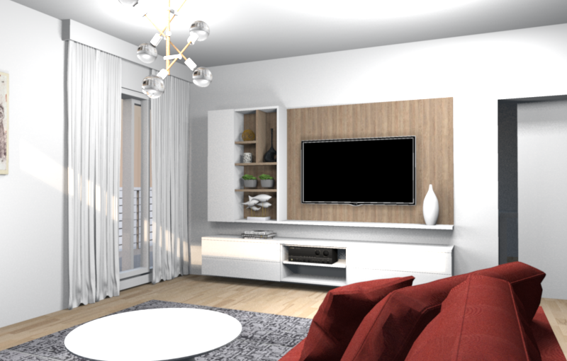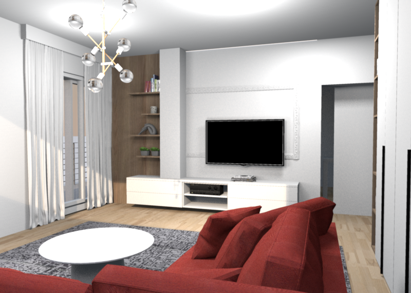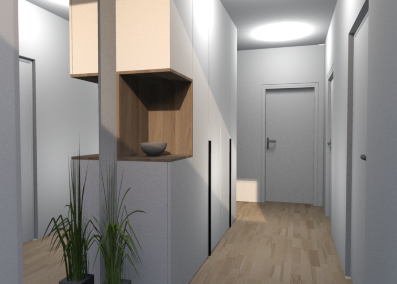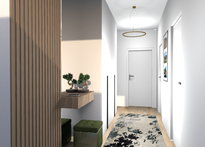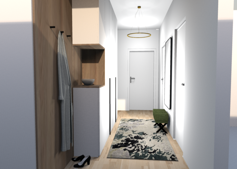 Uređenje dnevnog boravka, hodnika i kupaonice, vizualizacija.